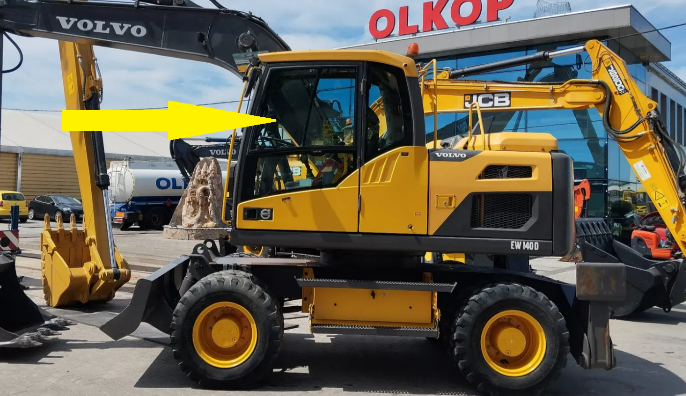 Экскаватор гусеничный (колёсный) Volvo ew 140 160 180 c ew 140 160 180 d ec 160 210 cl 250 dl 2010- стекло дверное верхнее в рамку ближе к лобовому (закалённое)